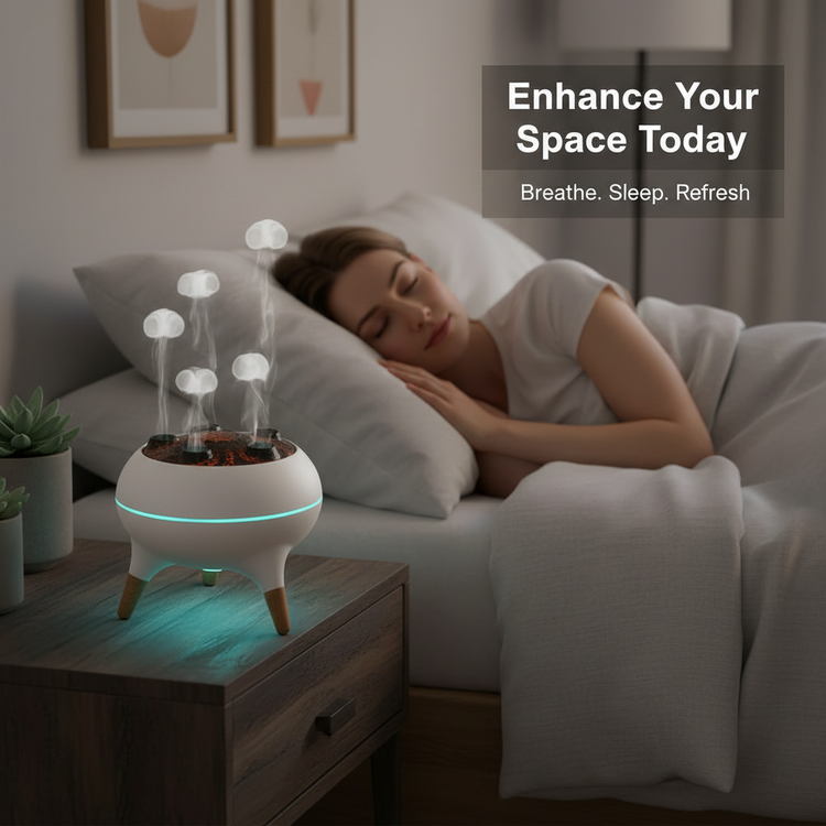Watch how the Dynamic Jellyfish Humidifier elevates any room with cool mist and customizable LED lighting. Perfect for your bedroom, office, or living room ambiance.