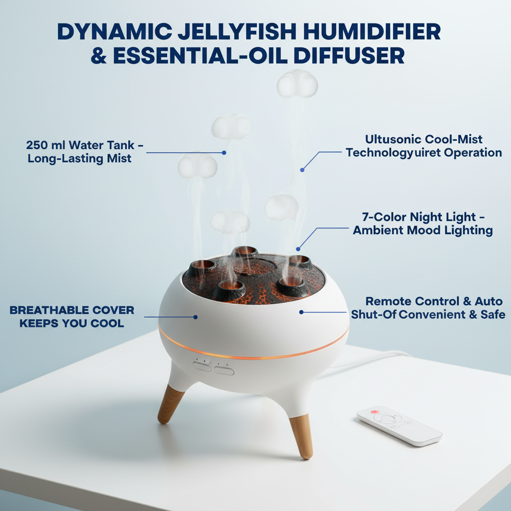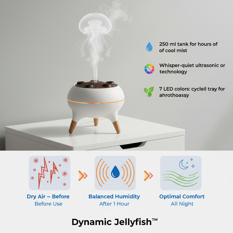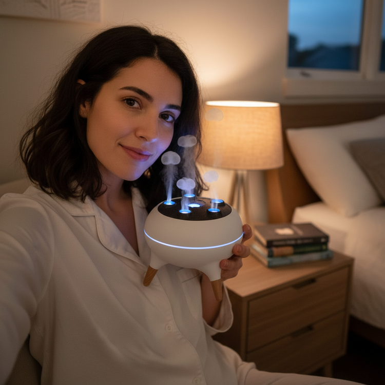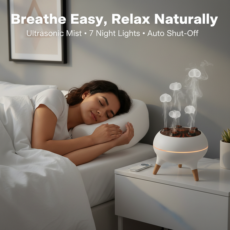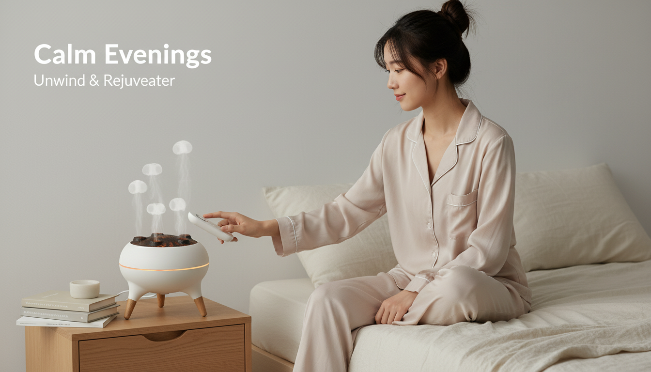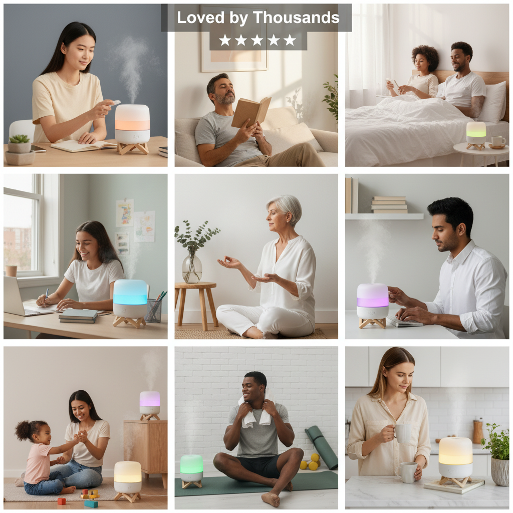Elevate your home or office atmosphere with serene humidity and scent. Experience restful sleep, reduced dry air irritation, and a peaceful vibe.